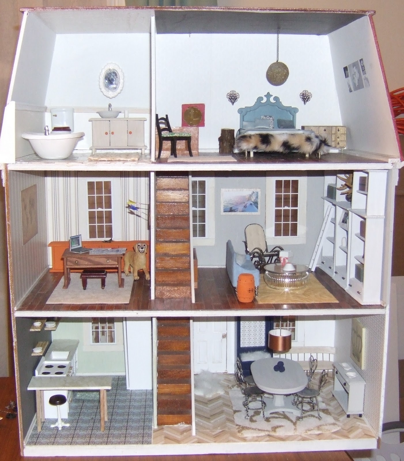 I am going to take better pictures in the daylight tomorrow and repost them. Probably post some before and afters as well, but right now, I’m ready for a break from the dollhouse.