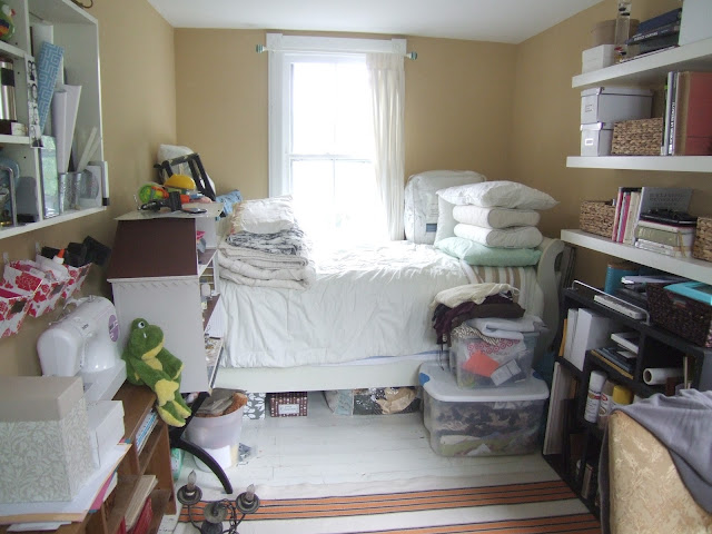 Ugh, those tubs in front of the bed and several that are under it all contain fabric. Anyone know of a space-efficient way to store loads of fabric in a non-ugly way?