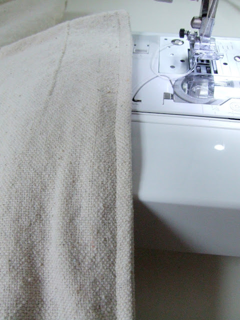 So if you have a nice heavy drop cloth, you can probably get away with using just one, so go ahead and skip ALL of these steps except the last one. 🙂 However, I do recommend, even if you did get a thicker drop cloth, to double it and sew two together, it will be sturdier and heavier so that it lays flat and doesn’t get tossed around with the breezes.