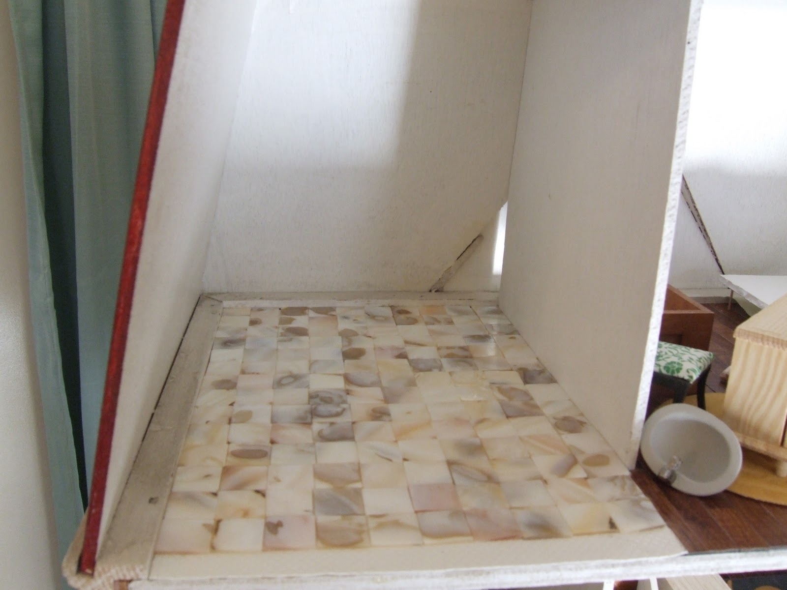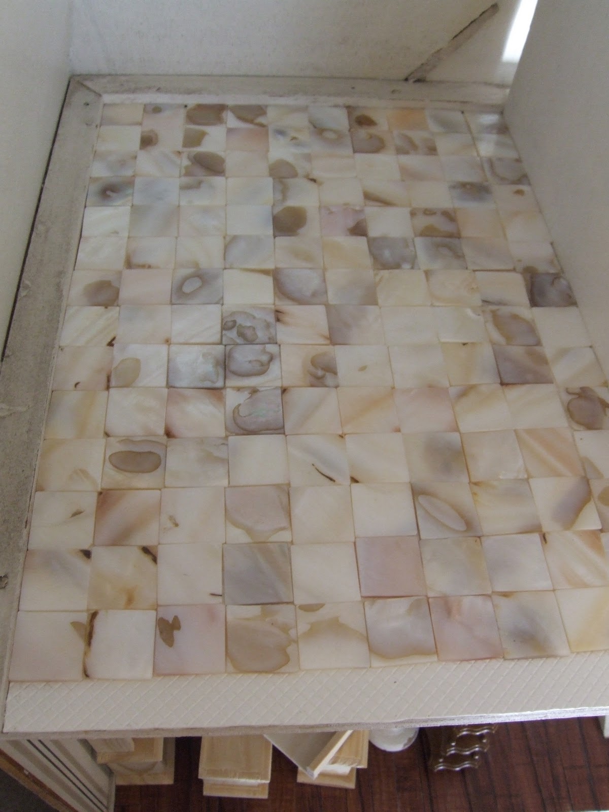 I went back to Michaels and picked up more cabinets to take apart. I came home with new flooring for the bathroom as well, they’re little mother of pearl tiles from the mosaic section. I wasn’t really happy with the original “tile.” The new tiles are way better, and I’ll be even happier once they’re actually installed next week.