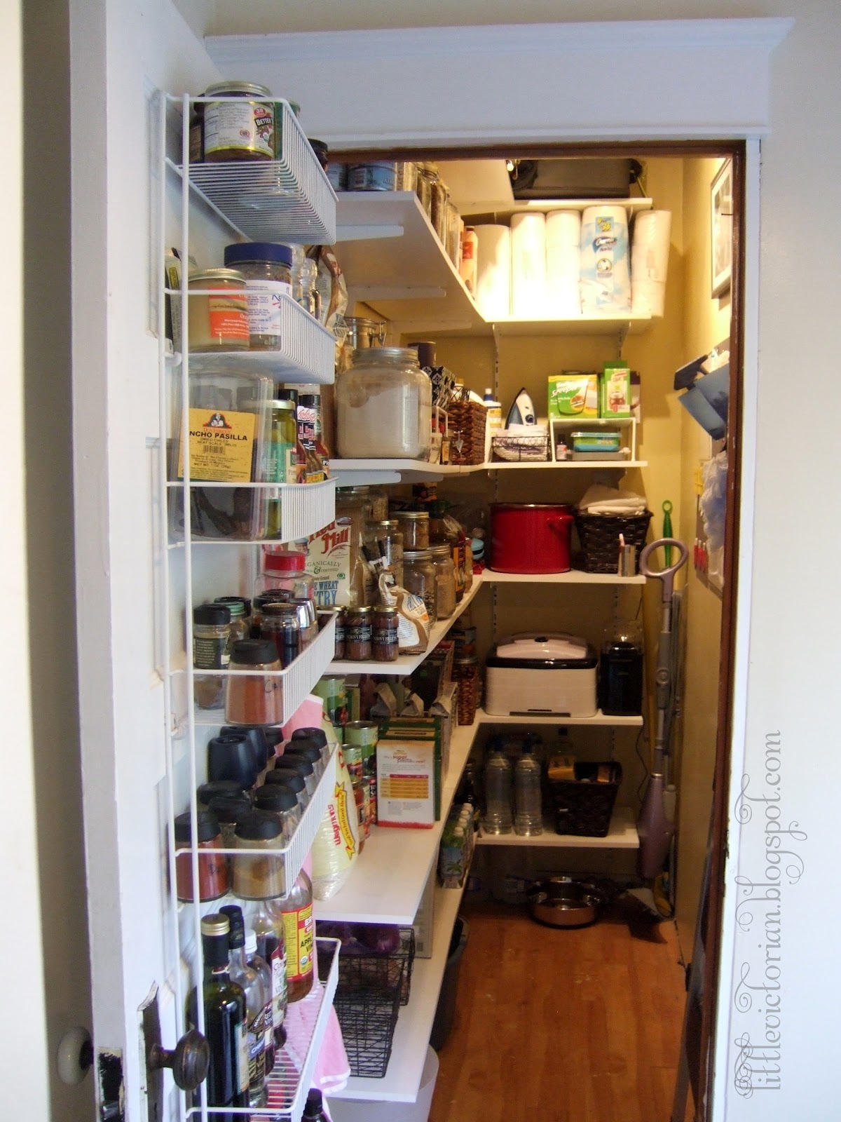 When we moved in, the washing machine and dryer were stationed in our house’s only closet. It was incredibly cramped. We actually had to keep the laundry detergent on the floor because there was no room for a shelf. There was no light in there and when you squeezed in to do the laundry, the door would always close behind you. The fact that the machines were black didn’t help the cave-like situation either. And this ill-functioning mess was also taking up the only closet in the house. So we decided to move the machines to the basement and turn the room into a pantry. Here’s what it looked like once we took the door off: