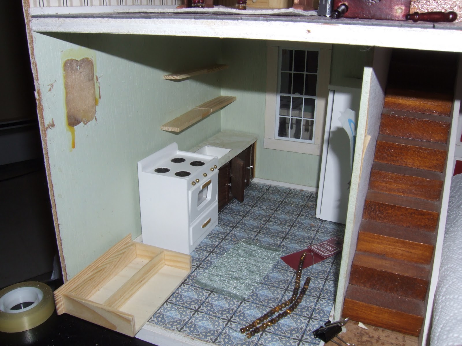 I’m about half done with the dollhouse as of this afternoon.