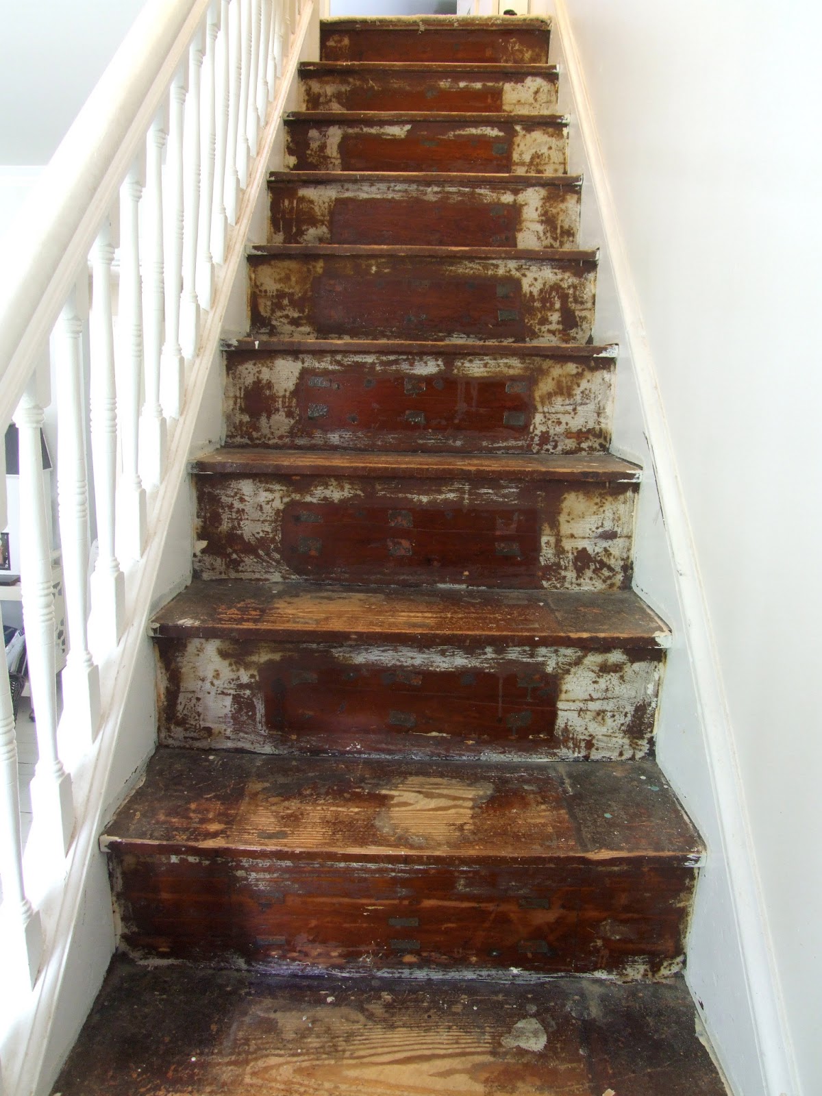 Our staircase has finally been stripped. After pulling up the carpet, it looked like this: